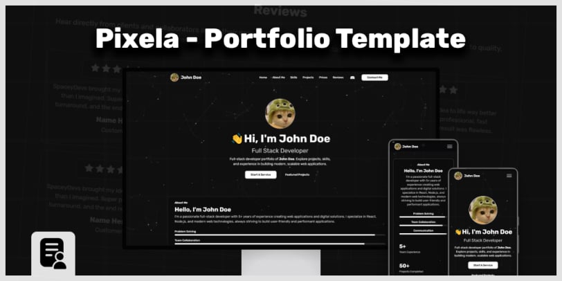 About, Skills, Projects, Pricing, Reviews - A flexible, user-friendly portfolio template.